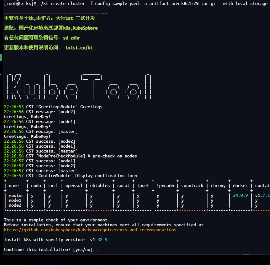 ./kt create cluster -f config-sample.yaml -a artifact-arm-k8s1329.tar.gz --with-local-storage
