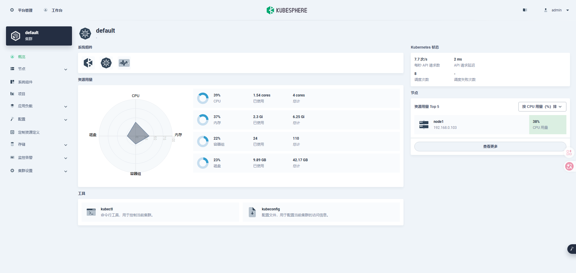 继续等待一段时间,可以看到在内核3.10.0上面使用containerd成功部署了1.34.5版本+ks