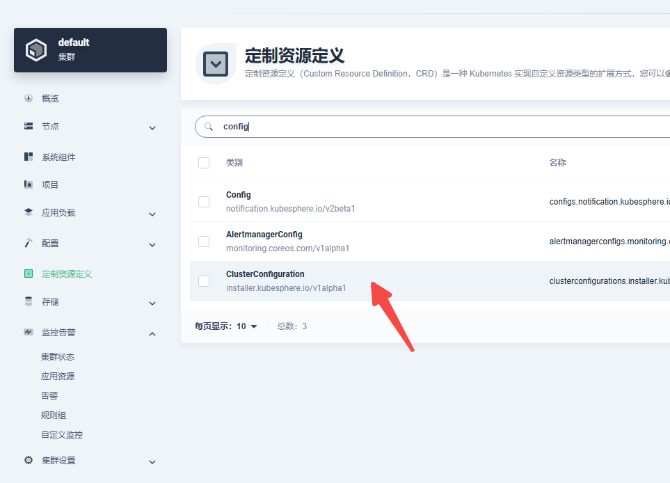 配置文件默认只安装了监控,如果需要安装其他组件,可以自行在自定义资源中开启