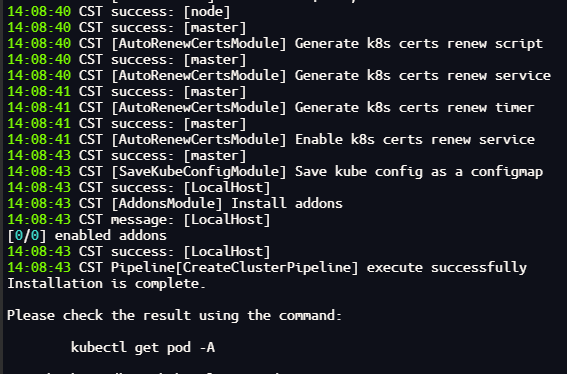 该命令kt会根据配置文件自动判断操作系统和架构以完成所有节点的初始化配置和依赖安装。