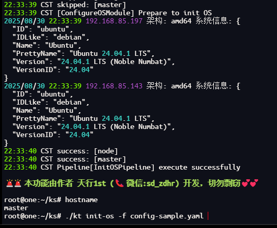 会根据配置文件自动判断操作系统和架构以完成所有节点的初始化配置和依赖安装。