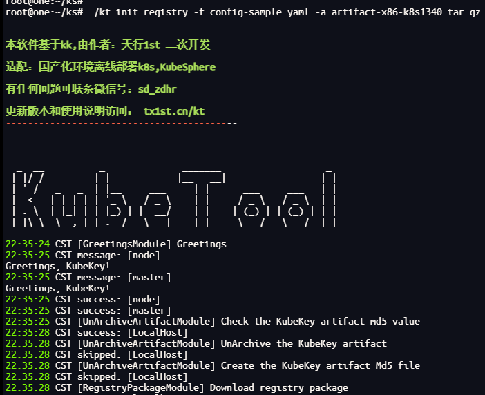 ./kt init registry -f config-sample.yaml -a artifact-x86-k8s1340.tar.gz