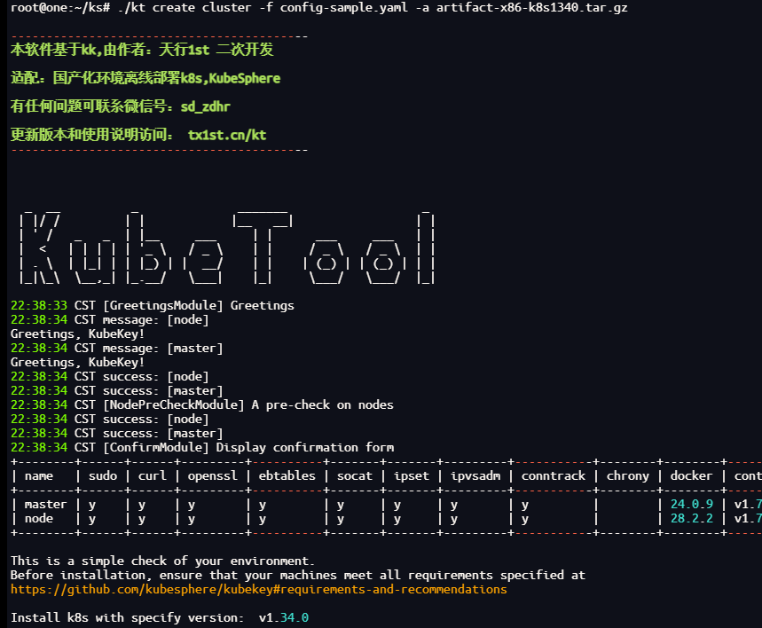 ./kt create cluster -f config-sample.yaml -a artifact-x86-k8s1340.tar.gz