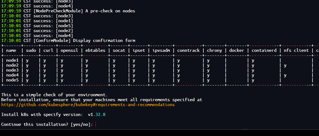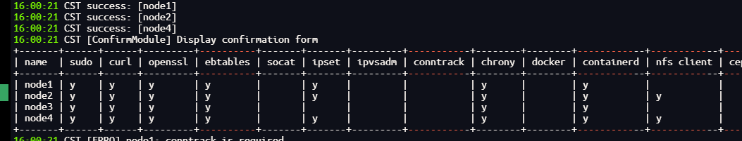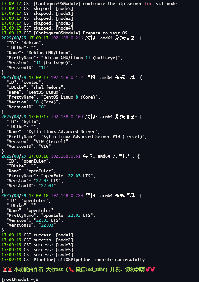 在该节点执行以下命令完成所有节点的初始化: ./kt init-os -f config.yaml