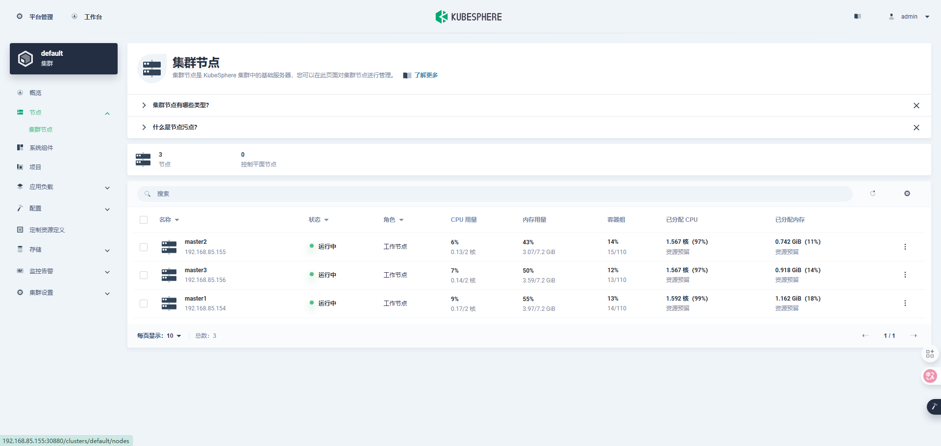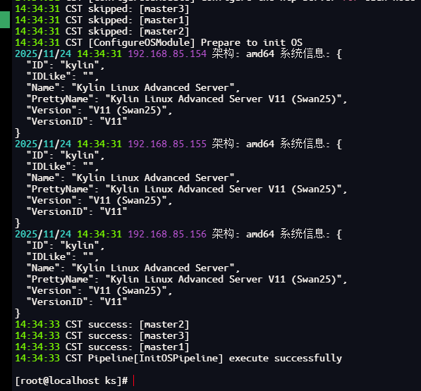 | master3 | x86_64 | Kylin V11 | 2核8G | 192.168.85.156 |
