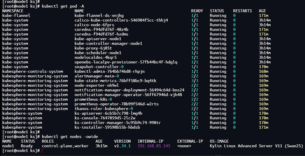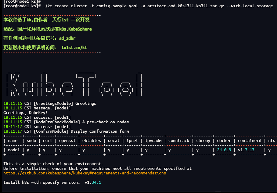 环境下,如何使用4条简短的命令在线/离线部署k8s 1.34.1+ks3.4.1