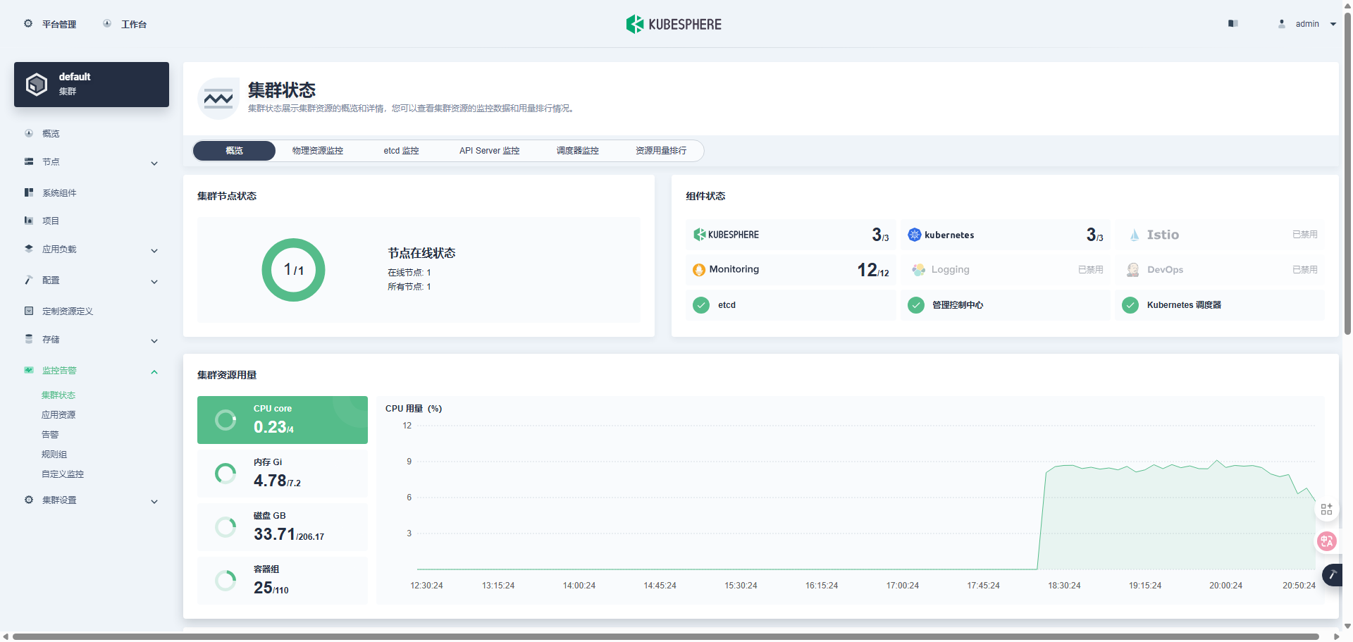 配置文件默认只安装了监控,如果需要安装其他组件,可以自行在自定义资源中开启