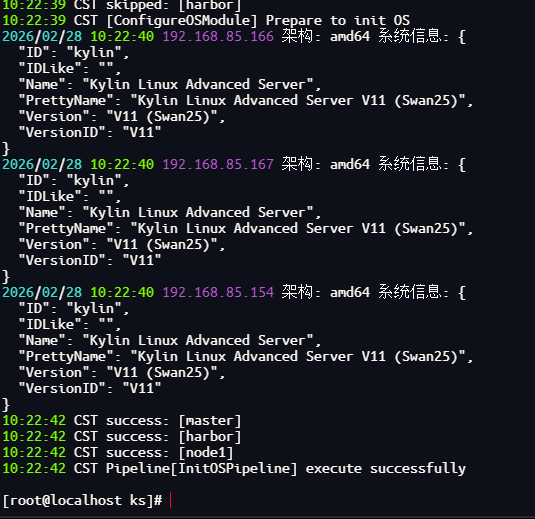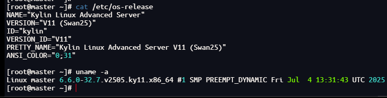 | master | x86_64 | Kylin V11 | 2核8G | 192.168.85.166 |