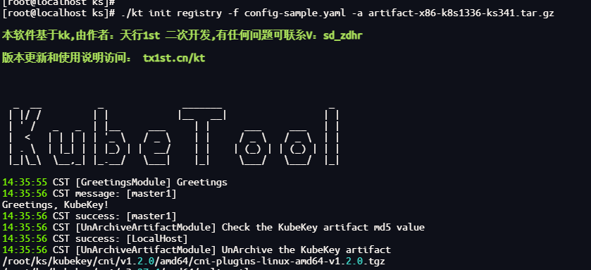 ./kt init registry -f config-sample.yaml -a artifact-x86-k8s1336-ks341.tar.gz