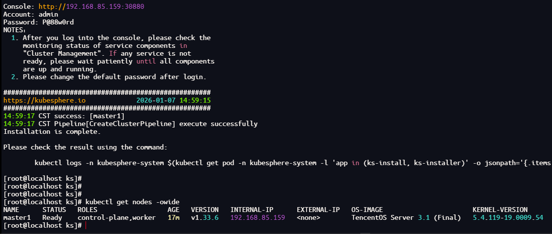 TencentOS V3 是经过安可测试的,在国家信创目录中。本文演示以TencentOS 3.1刚装完系统离线环境下,all in one部署k8s 1.33.6+ks3.4.1若有其他需要可添加我微信好友sd_zdhr。