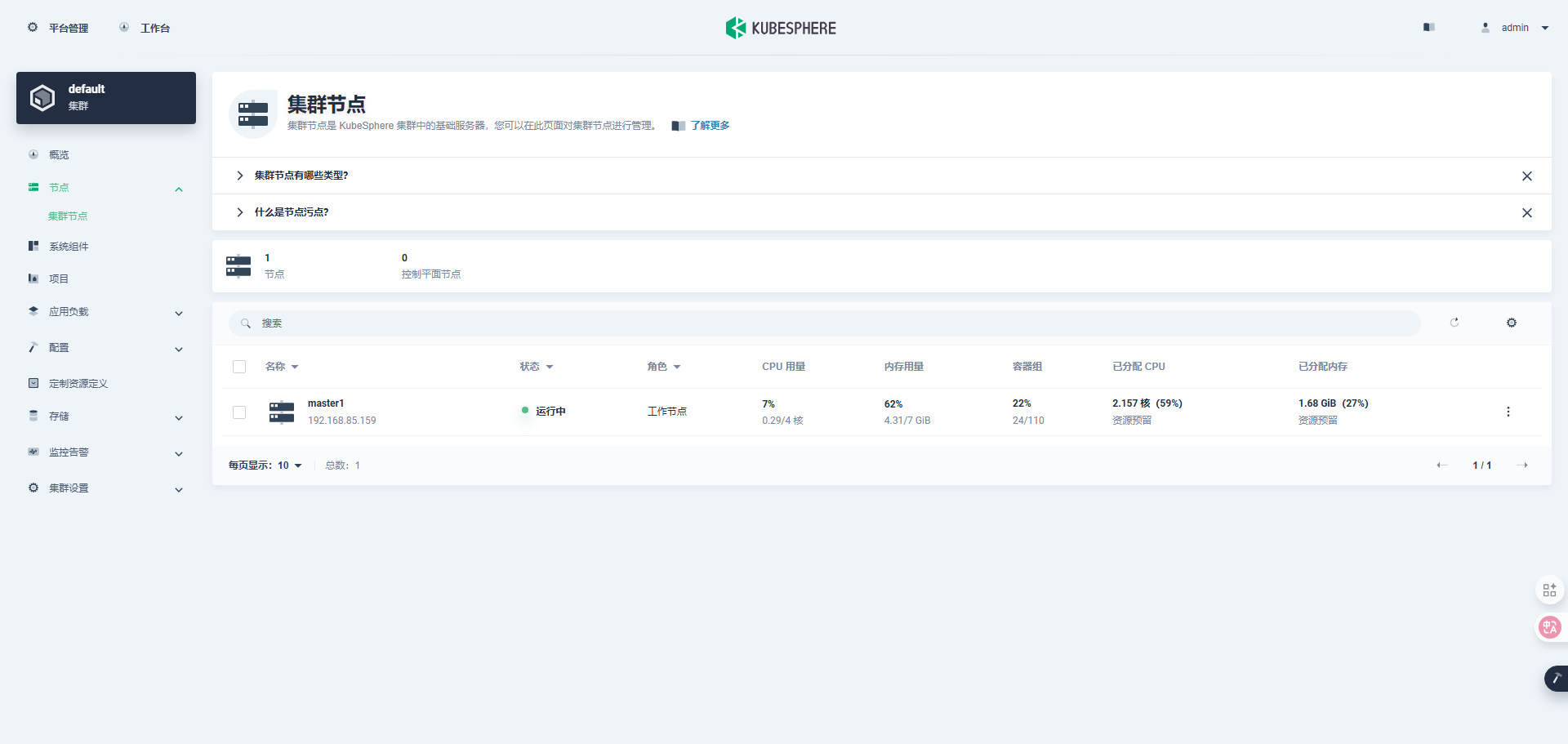 | master1 | x86_64 | TencentOS Server 3.1 | 4核8G | 192.168.85.159 |