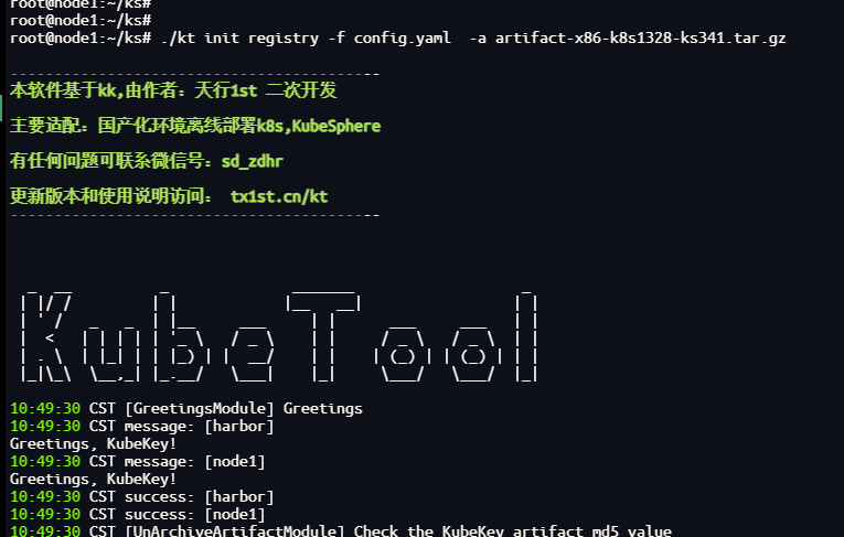 ./kt init registry -f config-sample.yaml -a artifact-x86-k8s1328-ks341.tar.gz